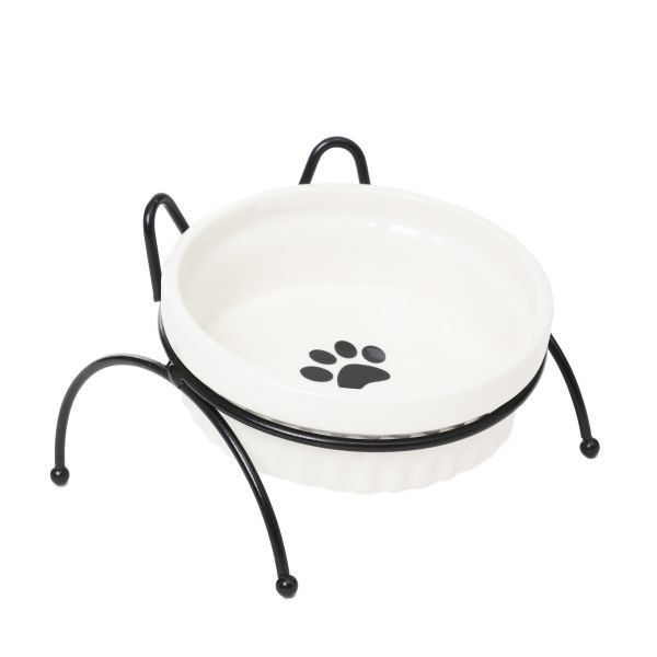 A macskaállványon lévő kerámia tál olyan kiegészítő, amely lehetővé teszi, hogy kedvence kényelmesen elfogyassza a neki felszolgált ételt.