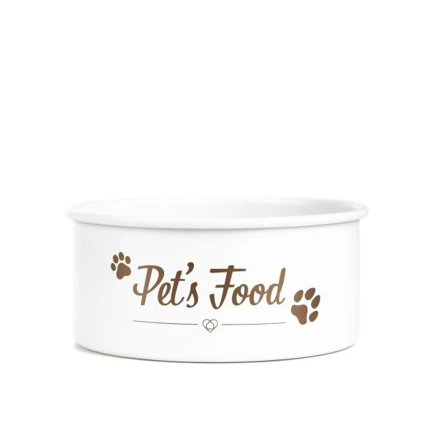 A tál fehér felületét arany felirat és aranyos mancsminta díszíti.